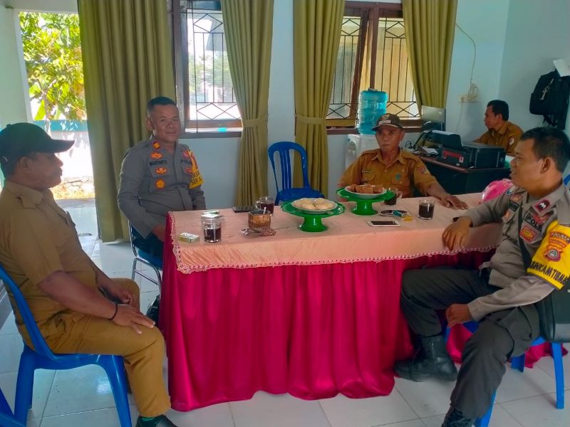 TOUNA – Kapolsek Ampana Kota Iptu Maryanto didampingi Bhabinkamtibmas Aipda Muslihin melaksanakan sambang silaturahmi dan kordinasi Kamtibmas ke Kantor Desa Sabulra Toba, Selasa (09/01/24).