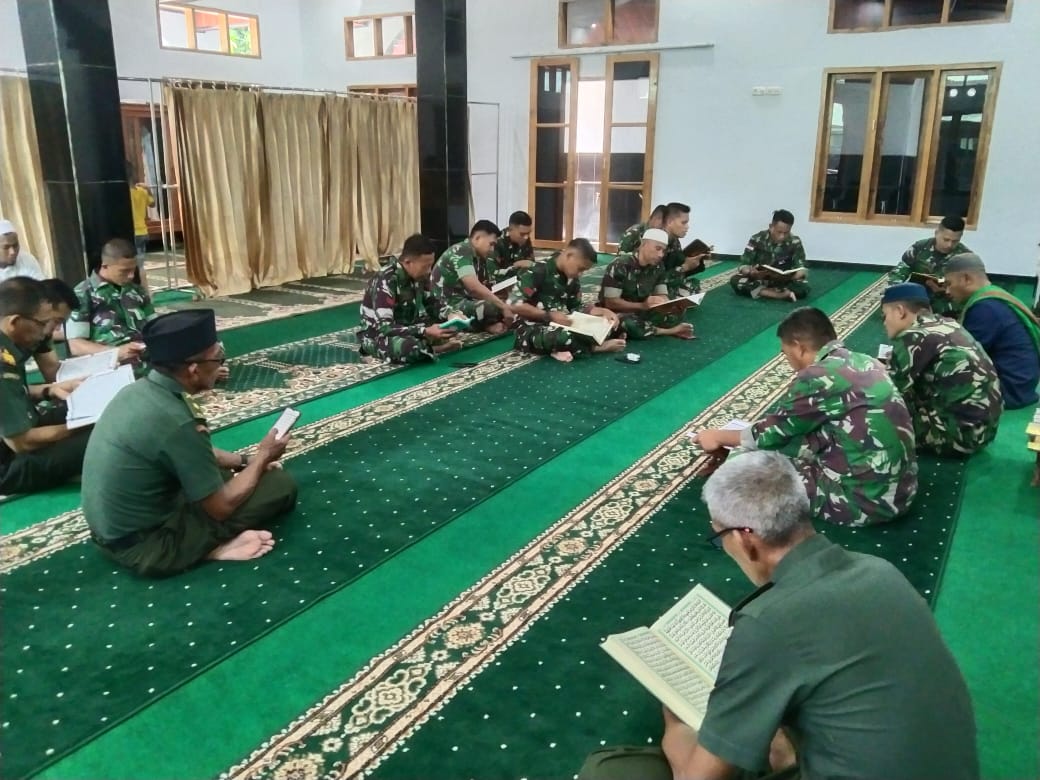 Hal ini adanya kebijakan Dandim 1307/Poso Letkol Inf Hasroel Tamin, S.H.,M.Hub.Int.tentang panggilan keagamaan oleh setiap anggota agar selalu membacakan Al Qur’an di selah selah kegiatan kita sehari hari.