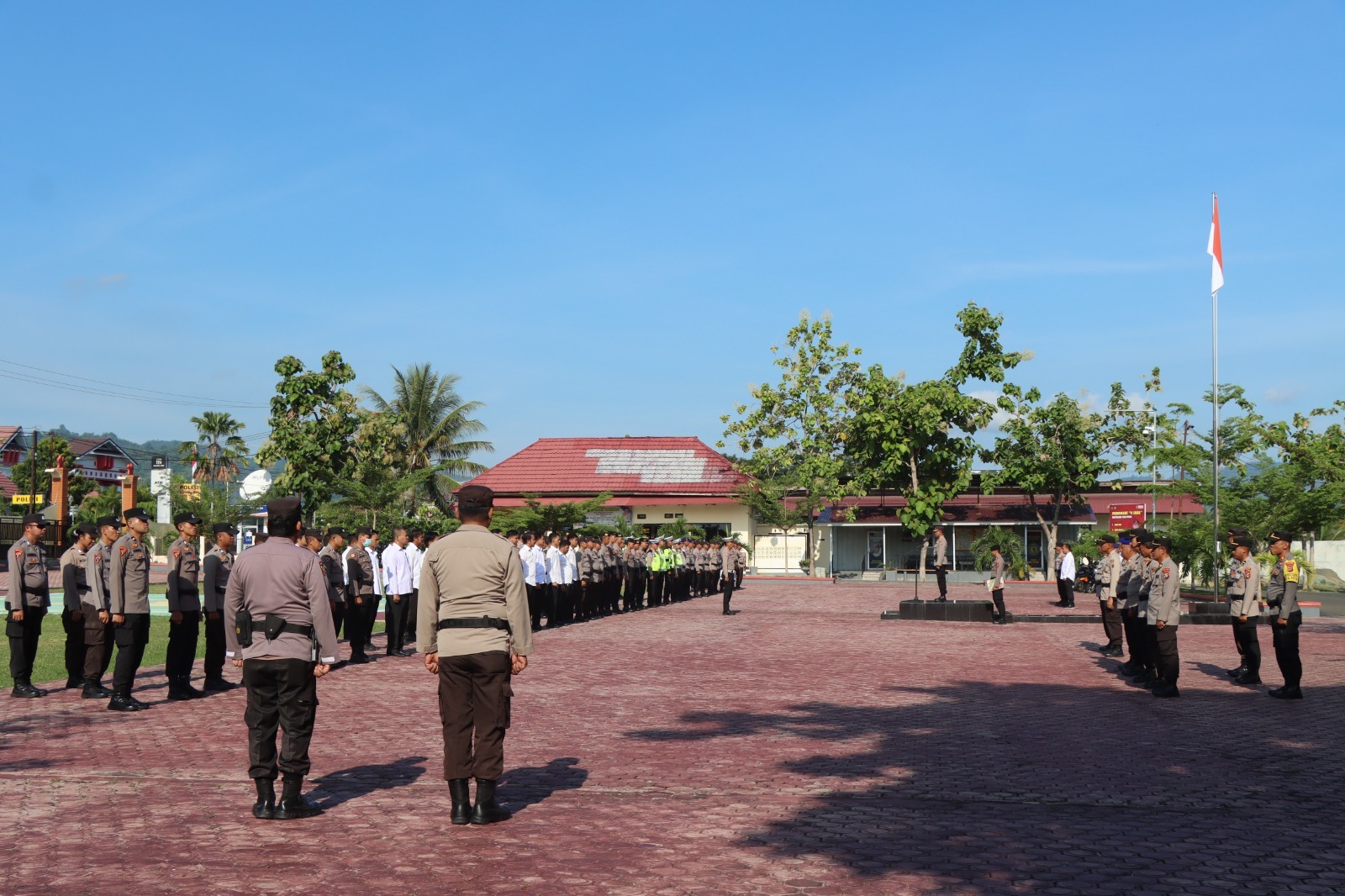 Touna – Guna mengantisipasi berbagai kemungkinan yang akan terjadi saat pembacaan putusan Mahkamah Konstitusi (MK) terkait sengketa hasil Pilpres 2024, Polres Touna melaksanakan apel gelar pasukan.