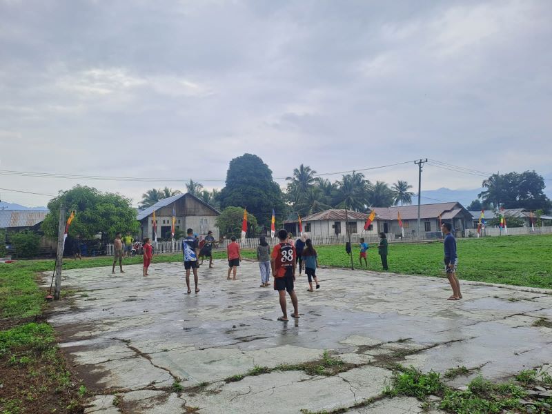 Kegiatan olahraga bersama dilakukan hampir setiap sore setelah selesai melaksanakan sejumlah pengerjaan di sasaran dan menunggu waktu magrib, Satgas TMMD menyempatkan waktu untuk berolahraga bersama anak remaja.