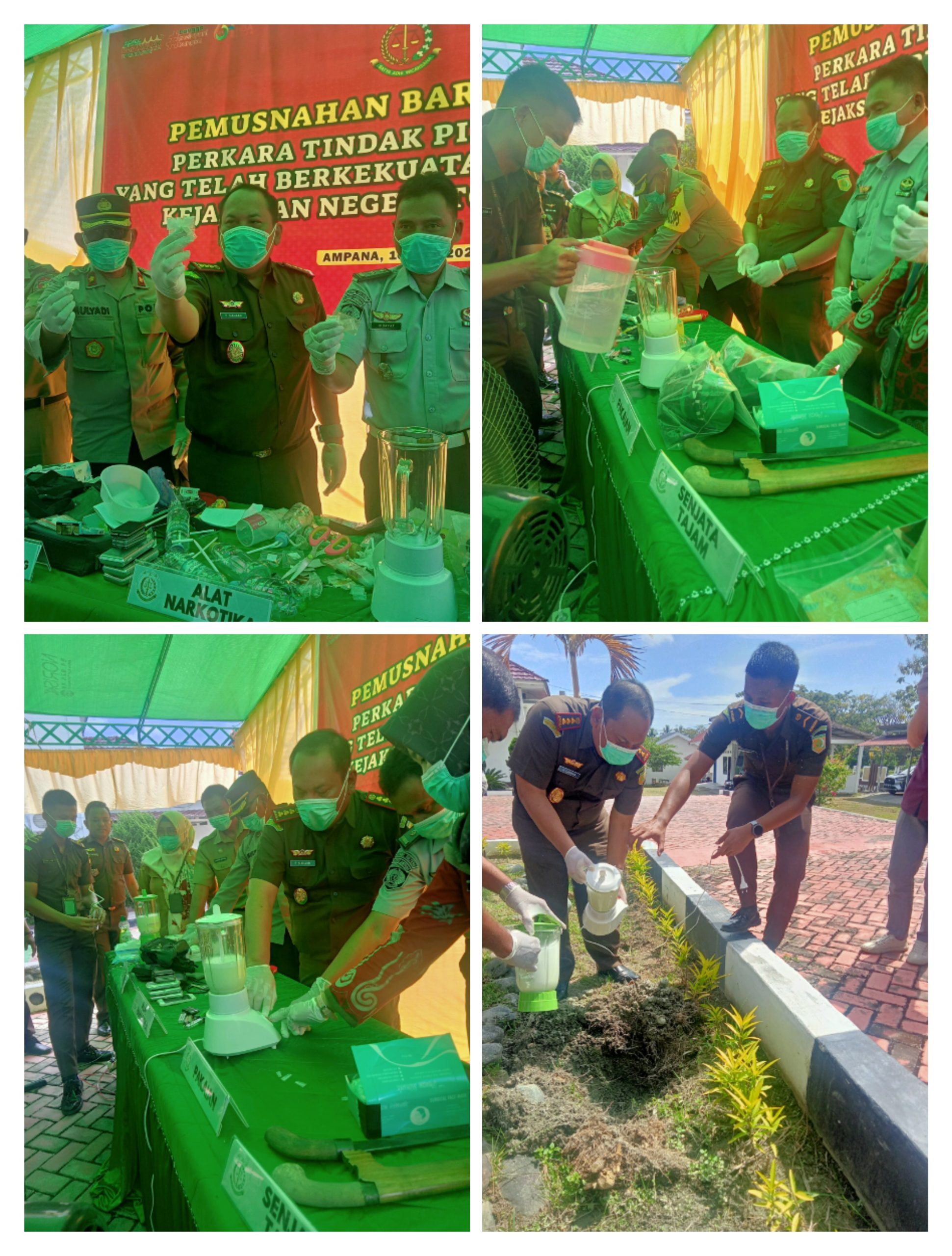 Diakhir sambutanya Kejari Touna mengatakan ,Perlu kita pahami bersama bahwa kegiatan pemusnahan barang bukti hasil dari tindak pidana merupakan upaya mengembalikan keseimbangan pada tatanan masyarakat yang sempat terganggu khususnya terhadap barang bukti berupa narkotika dan obat-obatan terlarang, sehingga kegiatan ini bukan sekedar seremonial semata melainkan lebih kepada bentuk kepedulian terhadap dampak yang ditimbulkan bagi generasi penerus bangsa.