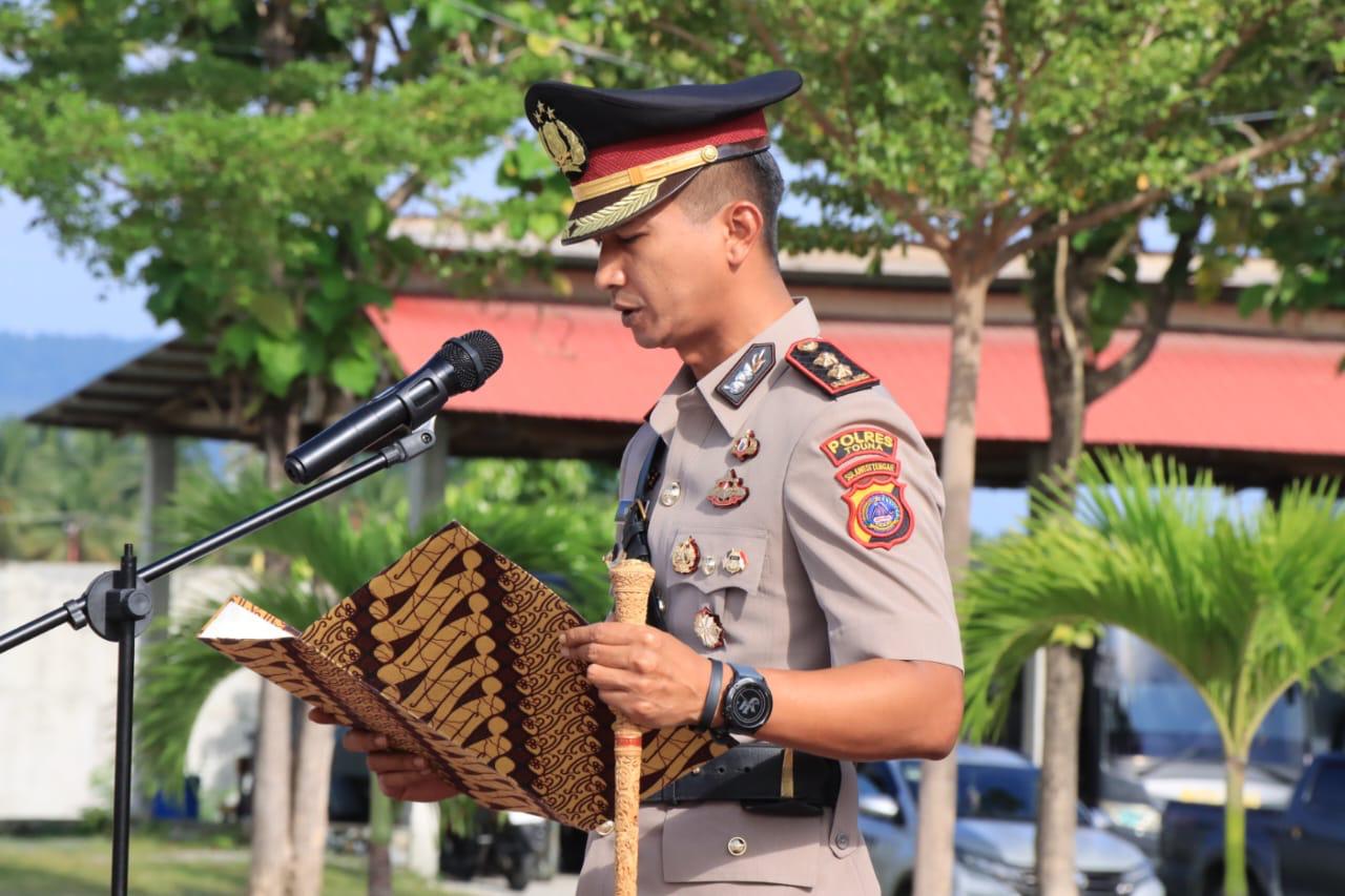 Caption: Kapolres Touna AKBP Yana Djayawidya saat pimpin upacara peringatan hari Joeng 2025.